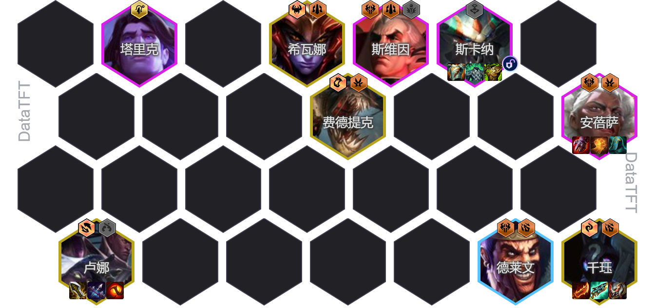 两星安蓓萨加强后非常强力。作为塞拉斯9级5费卡阵容的下位替代,成型难度更低,适合保分使用。