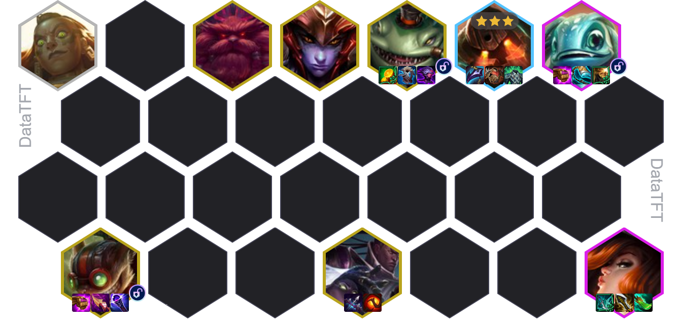 把所有装备合出来,用比尔吉沃特打连胜。如果你决定玩这套,在第一阶段1-1前解锁格雷福斯。坦克装在2星俄洛伊身上效果不错。