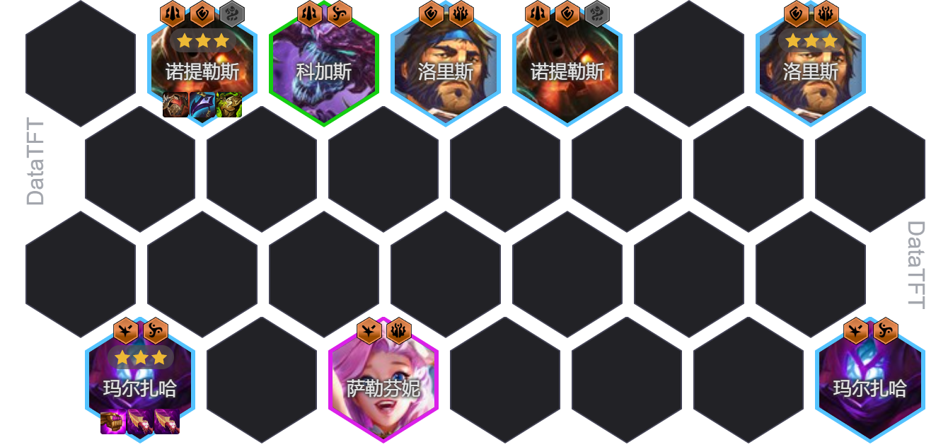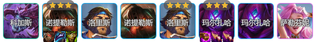 升到7级并慢D找玛尔扎哈3星、诺提勒斯3星和其他好事成双单位。