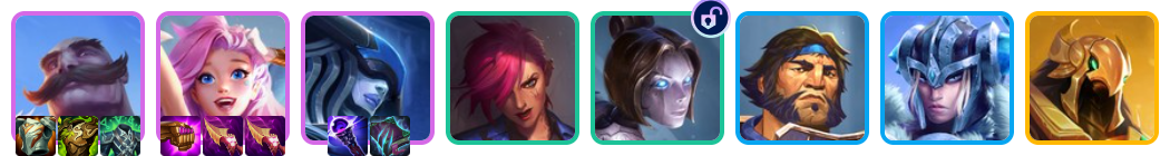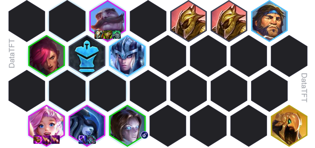 与皮尔特沃夫在羁绊方面配合良好的弗雷尔卓德,Lv8时进行快速D牌的4费阵容。