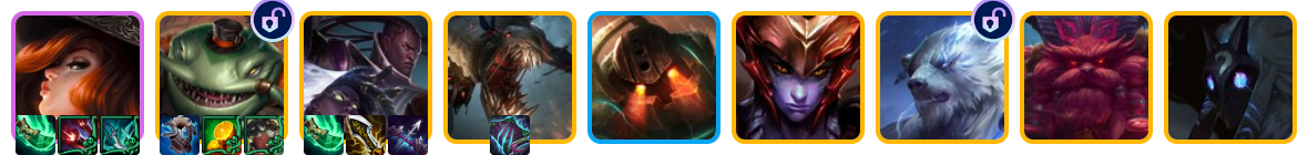这是一套围绕比尔吉沃特体系进行过渡的强力阵容。塔姆的技能配合河流之王和比尔吉沃特特性带来的成长能力贼强,而且能塞进去的5费英雄特别多,拿1很轻松。