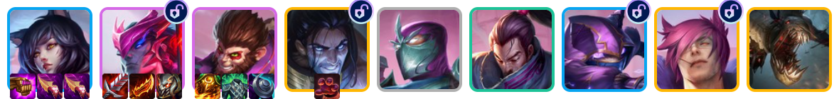这套阵容必须把2费的亚索升到2星,如果亚索数量不够就直接冲8级,很可能导致永恩解锁失败。